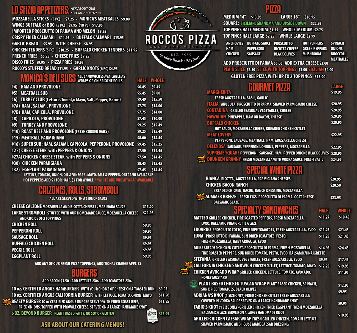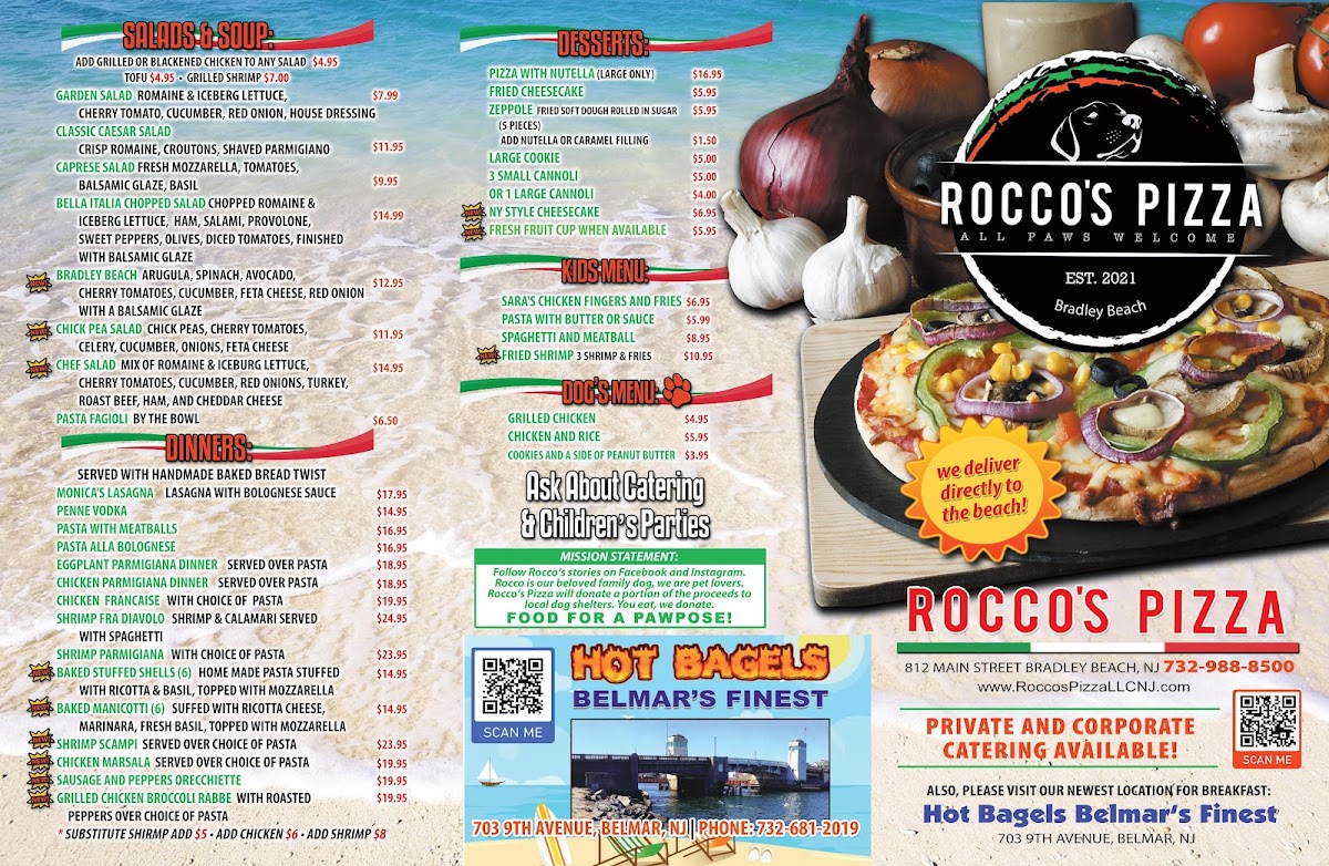 This menu suits a variety of moments, from grabbing a quick slice on the go to settling in for a casual meal with friends or family. Dishes like the Chicken Bacon Ranch Pizza or Broccoli Rabe and Sausage Pizza bring familiar flavors with a twist, while the Caprese Salad and Penne Pesto offer refreshing Italian touches that feel just right for a laid-back lunch or dinner by the shore.
